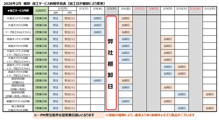 【重要】弊社棚卸における臨時休業に伴う出荷スケジュールに関しまして
